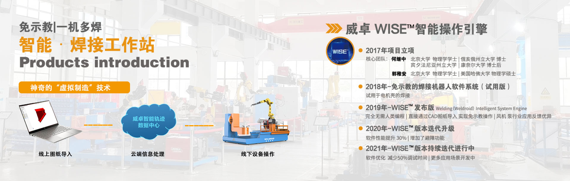 無錫威卓智能機(jī)器人有限公司成立于2017年,是無錫市政府引進(jìn)的科技領(lǐng)軍型高新技術(shù)企業(yè),公司研發(fā)團(tuán)隊80余人,我們堅持自主創(chuàng)新,利用自主開發(fā)的虛擬制造技術(shù)對傳統(tǒng)焊接行業(yè)進(jìn)行升級改造。 公司主推的工業(yè)風(fēng)機(jī)系列-智能焊接工作站產(chǎn)品,具有免示教、實時跟蹤、簡易工裝、傻瓜式操作等優(yōu)點,真正幫助企業(yè)解決了招焊工難,用工成本高,焊接質(zhì)量不穩(wěn)定等問題。